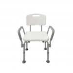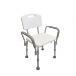 Estrutura que não enferruja, assento e encosto em polietileno e pés e braços com borracha antiderrapante, para maior segurança.